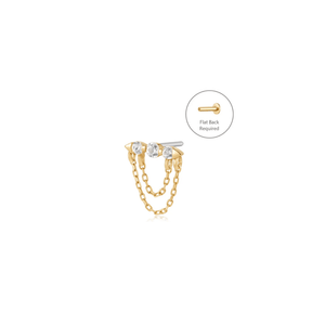Crafted with white sapphires and dangling gold chains, this modern 14k YG piercing earring adds a touch of luxury to your ear party. Perfect for many ear placements - we especially love it in a flat piercing